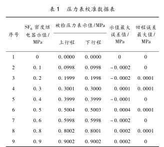 通過(guò)兩種方法的對(duì)比,發(fā)現(xiàn)被檢壓力表10個(gè) 點(diǎn)的示值誤差最大值及回程誤差最大值均在允差 內(nèi),且兩種方法得到的數(shù)據(jù)值相差極小。此后又 通過(guò)不同等級(jí)的壓力表用同樣的比對(duì)方法進(jìn)行試 驗(yàn)研究,通過(guò)對(duì)測(cè)量數(shù)據(jù)進(jìn)行分析,發(fā)現(xiàn)使用sf6 密度繼電器在線校準(zhǔn)法不但操作便捷,而且測(cè)量 值也與實(shí)驗(yàn)室標(biāo)準(zhǔn)裝置相差極小,故采用此種在 線校驗(yàn)法切實(shí)可行。
