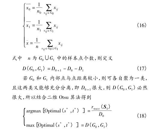 應(yīng)度函數(shù),同時(shí),引入離差平方和法作為傳統(tǒng)二維Otsu算