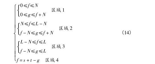 在上述計(jì)算中,/ = g - N和f = g + N兩條輔助線已經(jīng)劃 分了目標(biāo)類和背景類的像素區(qū)域,所以,(s,t)閾值組合也 需滿足該區(qū)域,即滿足如下限制條件 (■0^/^^N Wg^f + N rN^f^L - N