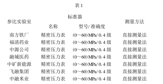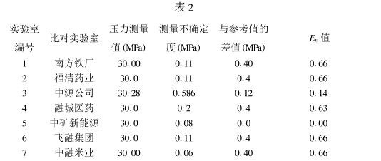 參加比對(duì)的實(shí)驗(yàn)室依據(jù)JJG52 - 1999《彈簧管式一般 壓力表、壓力真空表和真空表檢定規(guī)程》的要求和步驟進(jìn) 行壓力測(cè)量,取30MPa測(cè)量值作為本次比對(duì)參考值。
