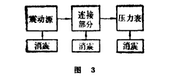 (1 )溯源減震法:從壓力表部位到震動(dòng) 源逐步采取措施,消除或減輕震動(dòng)(見(jiàn)圖3)。