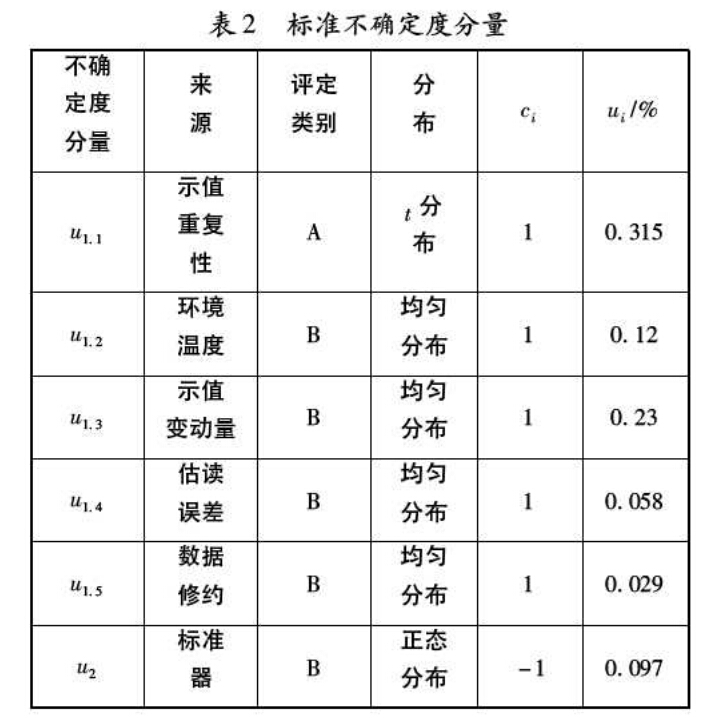 3.5標(biāo)準(zhǔn)不確定度分量一覽表 各標(biāo)準(zhǔn)不確定度分量見表9