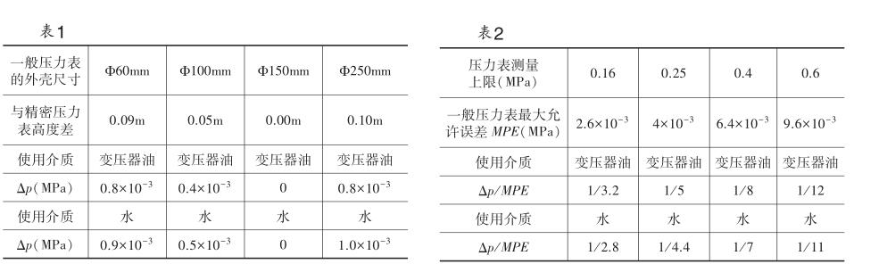 液柱高度差對一般壓力表檢定結(jié)果的影響