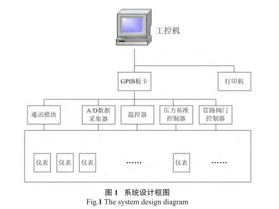 本設(shè)計(jì)中的智能壓力儀表自動標(biāo)定裝置主要由工控機(jī)、 測試儀器、通訊巡檢模塊、環(huán)境溫箱、溫箱控制器、管路閥門、 增壓泵等組成。